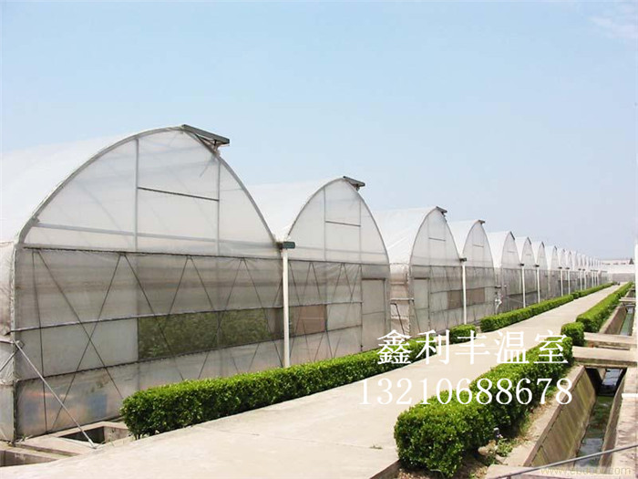 连栋温室是一种经济型温室,它以优美的弧线形和造价低倍受用户欢迎。弧形室顶美观大方,视线流畅。结构用钢量小,保温性能好。制造成本相对较低,属经济型温室,适用于我国大部分地区。北方地区多采用双层膜温室,南方地区多选用单膜温室。能在可见光0.4-0.7微米范围内得到最大光照,层膜充气后,可以形成厚厚的气囊,能有效地防止热量流失和阻止冷空气的侵入,采用双层充气膜后可大大提高温室保温性能,节省运行成本。覆盖材料顶部为聚乙烯无滴长寿膜覆盖,外层防紫外线,内层防集露;四周可以根据用户需要采用聚乙烯无滴长寿膜或聚碳酸酯中空板覆盖。