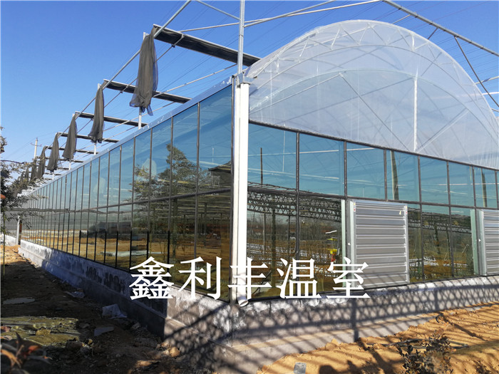 连栋温室是一种经济型温室,它以优美的弧线形和造价低倍受用户欢迎。弧形室顶美观大方,视线流畅。结构用钢量小,保温性能好。制造成本相对较低,属经济型温室,适用于我国大部分地区。北方地区多采用双层膜温室,南方地区多选用单膜温室。能在可见光0.4-0.7微米范围内得到最大光照